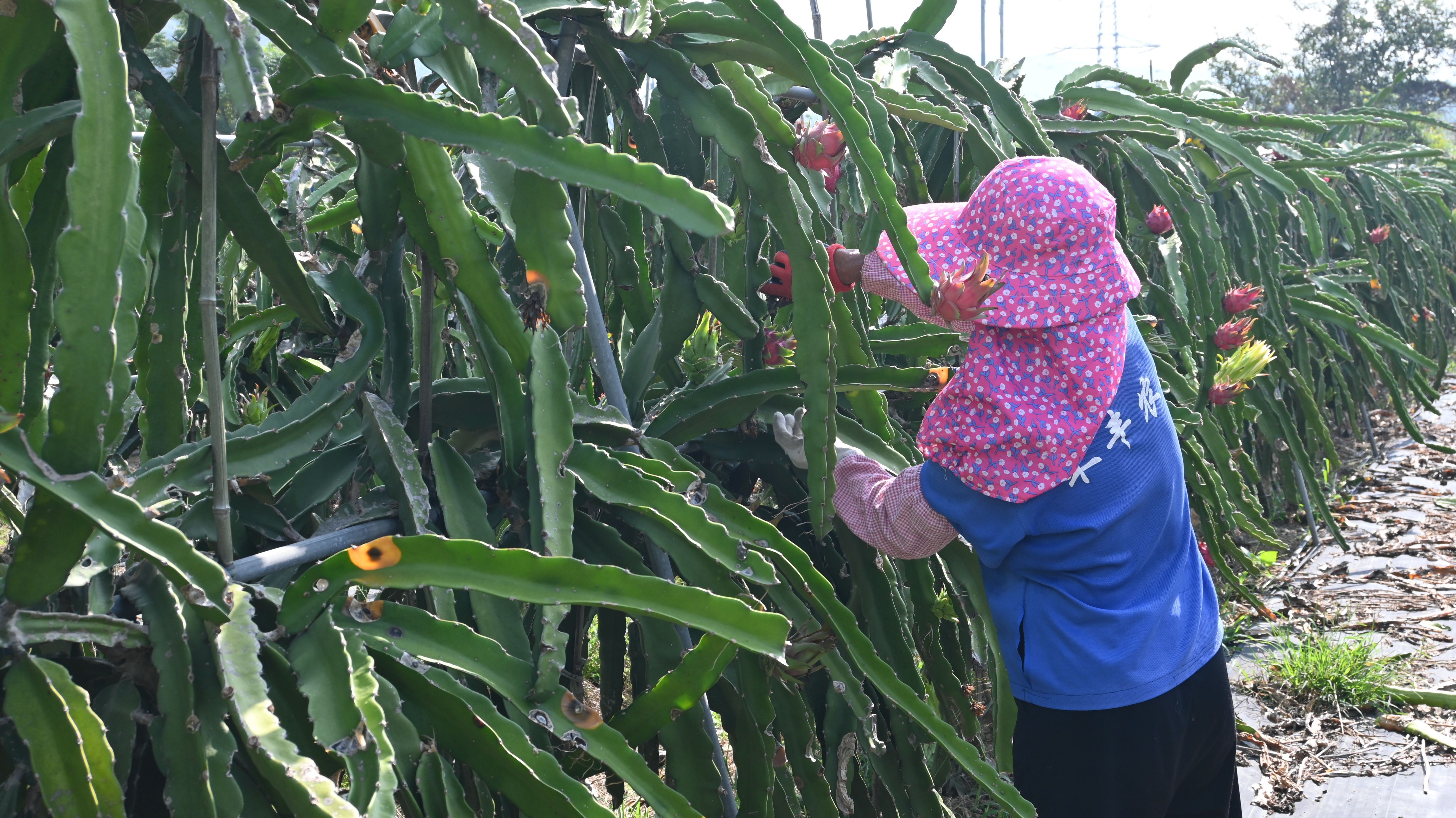 这一丰收景象不仅为基地带来了经济效益,也为当地村民提供了更多的就业机会。近年来,我市充分依托本地优质的土壤、适宜的气候等资源优势,结合科技力量,因地制宜发展火龙果种植产业,在推动农业产业升级的同时,帮助村民实现了就业增收,走出了一条产业兴农、富民兴村的乡村振兴之路。