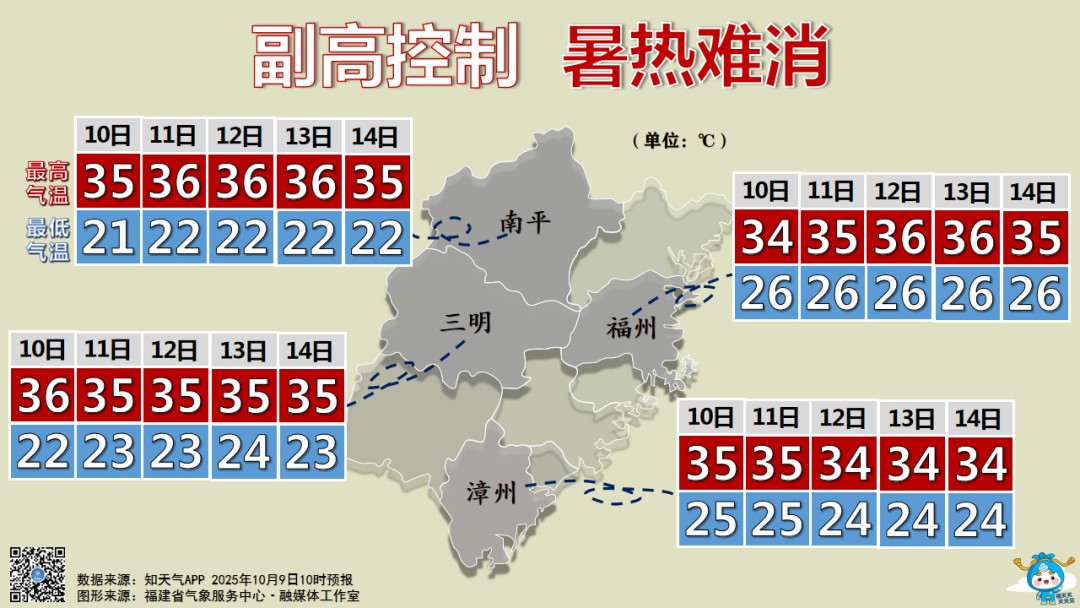 好消息是,和盛夏相比,十月的热不至于持续一整日。比如南平、三明,虽然白天炎热,但夜晨最低气温在22℃左右,能嗅到一抹初秋的气息。