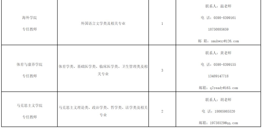 填写《报名登记表》,将简历、身份证、学历学位(境外学历认证)、职称、资格证书、学术成果首页等材料扫描,以“XX学科博士(姓名)应聘”为主题,发邮件至学校招聘邮箱(smxyzp@163.com)及相关学院邮箱。