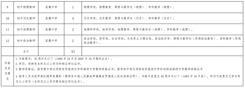 福州市罗源县2025年第二批次公开招聘参聘教师43名