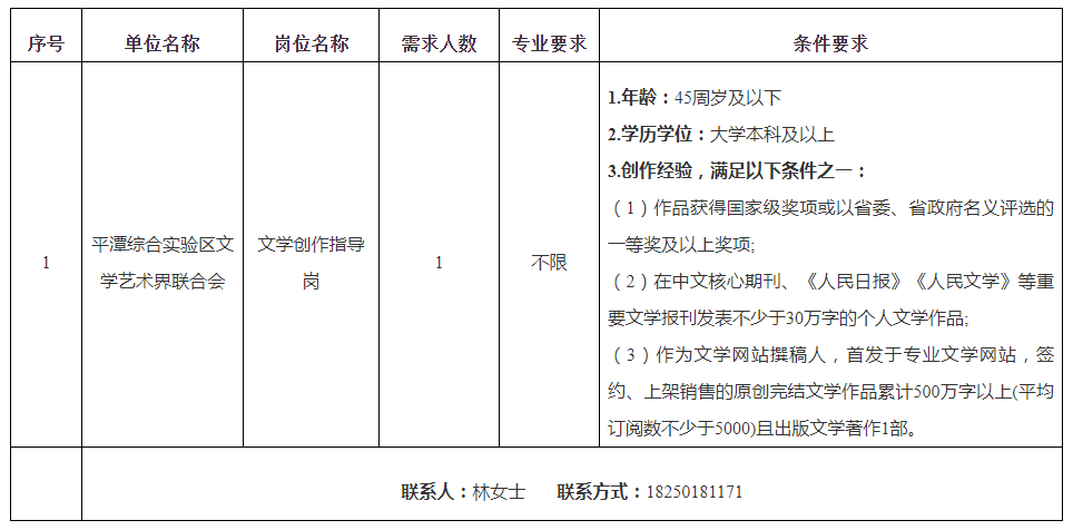 平潭综合实验区公开招聘文学类紧缺人才1名