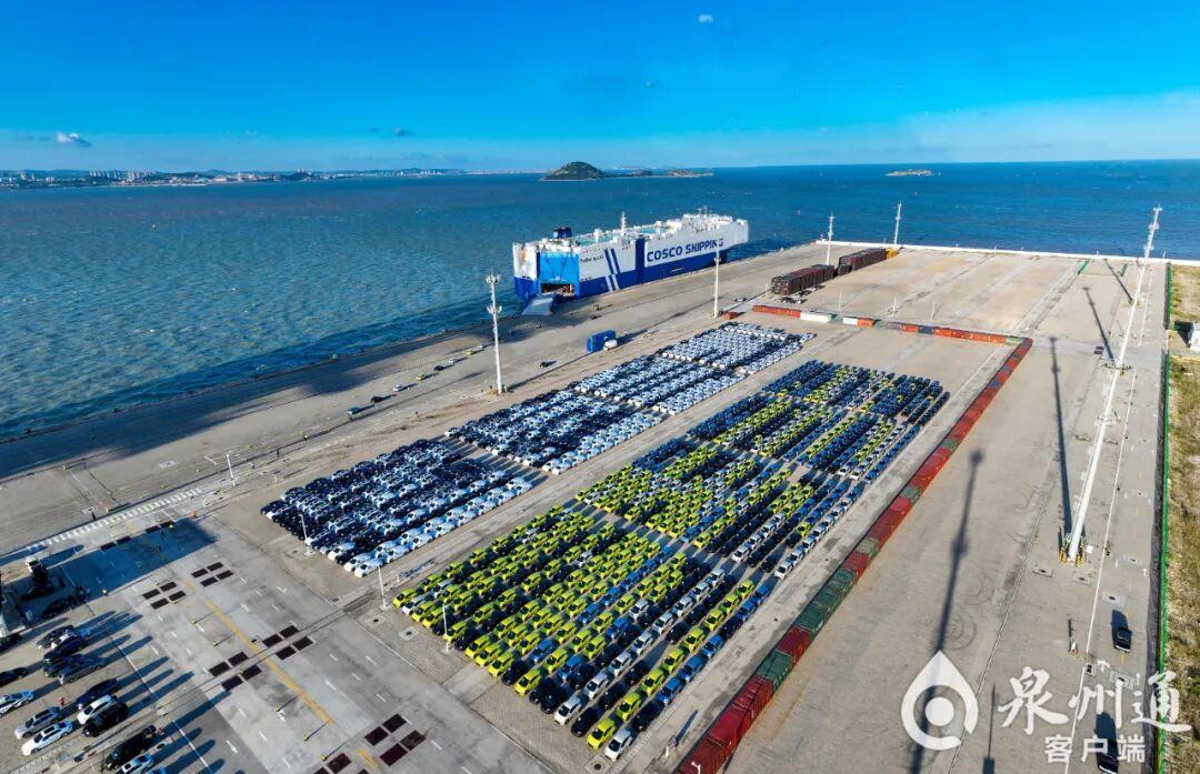 因海而生,向海图强。8月17日,泉州港石湖作业区,搭载上千辆比亚迪新能源汽车的“海河口”轮劈波斩浪,驶向欧洲。从传统“丝瓷茶”出口向电动汽车、光伏、锂电池等“新三样”出口转型,泉州港口经济增加值首次突破2000亿元大关,成功跻身全国第一梯队。