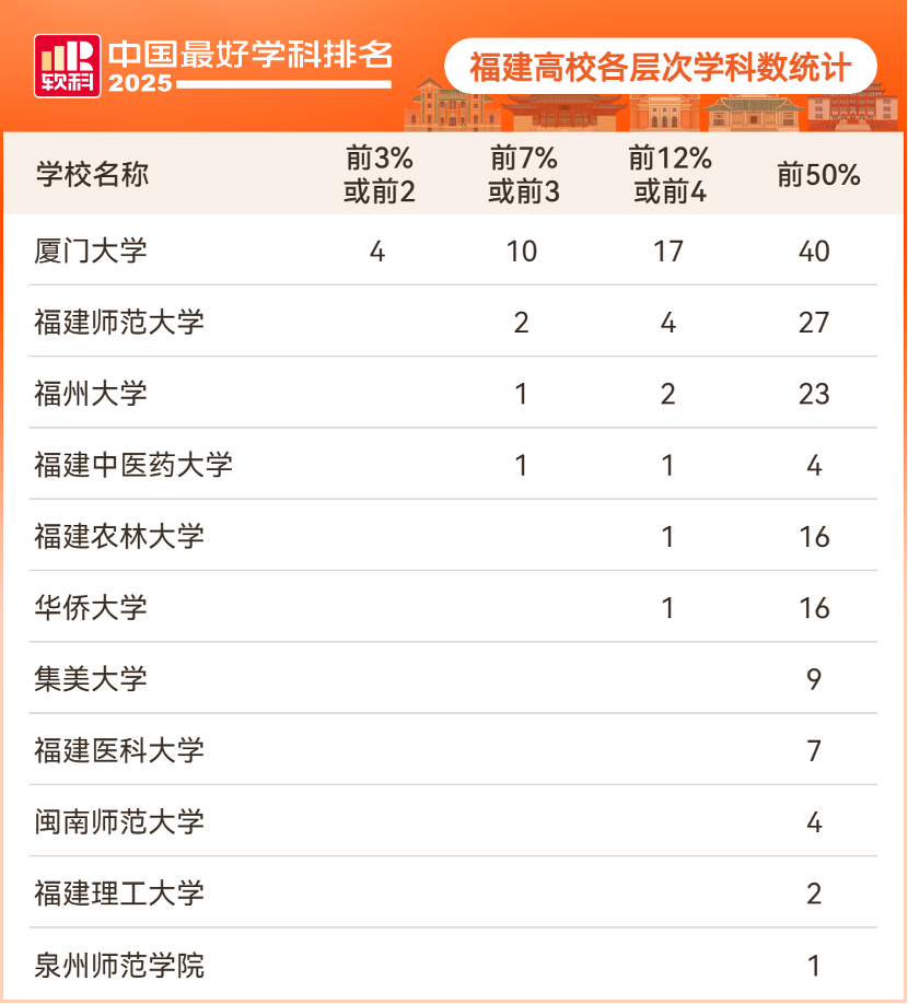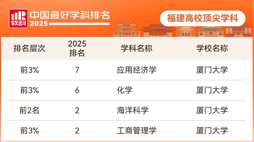 2025软科中国最好学科排名发布,福建11所高校149个学科上榜!